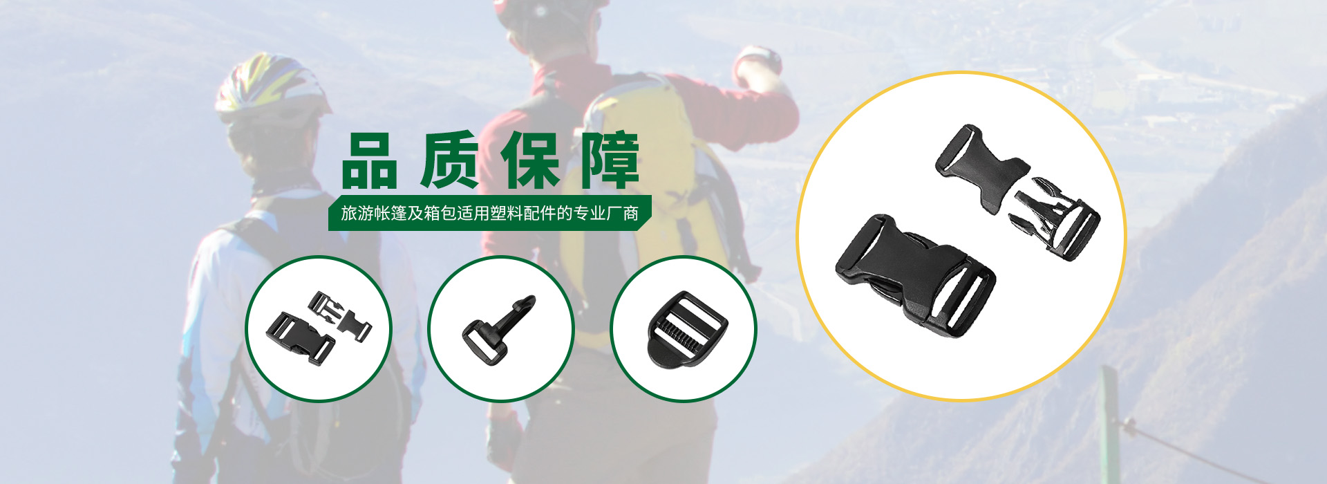 The main products are plastic accessories for various tents and bags, with a complete range of over 3000 products in the entire series